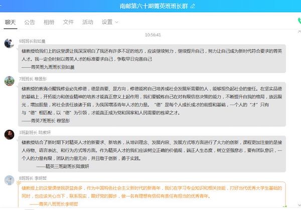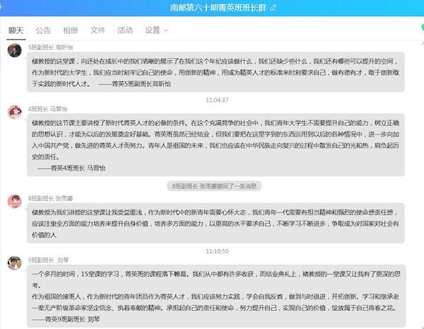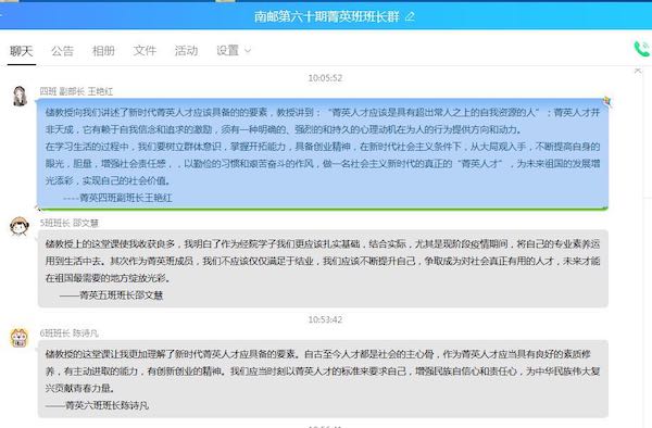 2020年5月10日,校关工委副主任、冰球突破mg正规官网关工委副主任储成祥教授在线上平台主讲冰球突破mg正规官网第六十期菁英人才学校暨冰球突破mg正规官网学生骨干培训班第十六课,主题为《新时代菁英人才应具备的要素》,经院127名青年师生“云参与”本次讲座。5月15日,青年师生们对于课程内容开展了“云热议”。