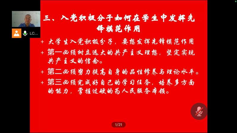 2022年5月17日中午,冰球突破mg正规官网关工委副主任、冰球突破mg正规官网关工委副主任储成祥教授为冰球突破mg正规官网第468期暨冰球突破mg正规官网第14期入党积极分子党校培训班学员讲授主题为“时刻牢记党员条件、义务和权利,争做学生中的先锋模范”的开班第一课,57名入党积极分子党校培训班学员通过网络平台线上学习。