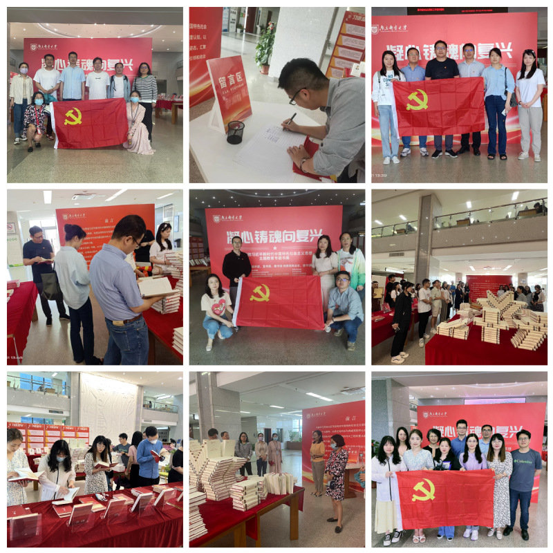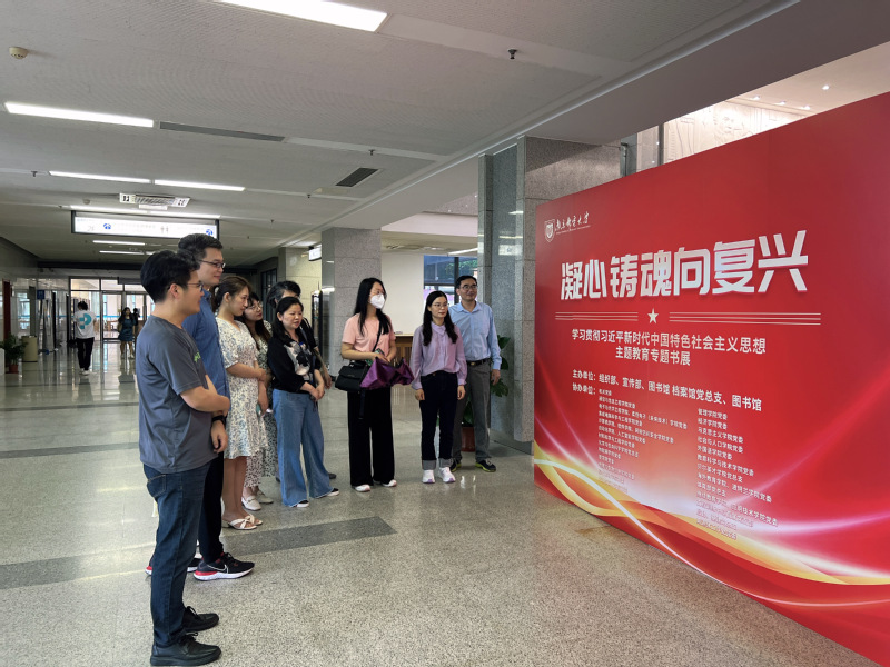 为深入开展学习贯彻习近平新时代中国特色社会主义思想主题教育,进一步强化党员的宗旨意识,提升党性修养。2023年5月15日-6月6日,冰球突破mg正规官网党委组织各支部党员在仙林校区图书馆二楼大厅开展了“凝心铸魂向复兴”专题书展参观主题党日活动。