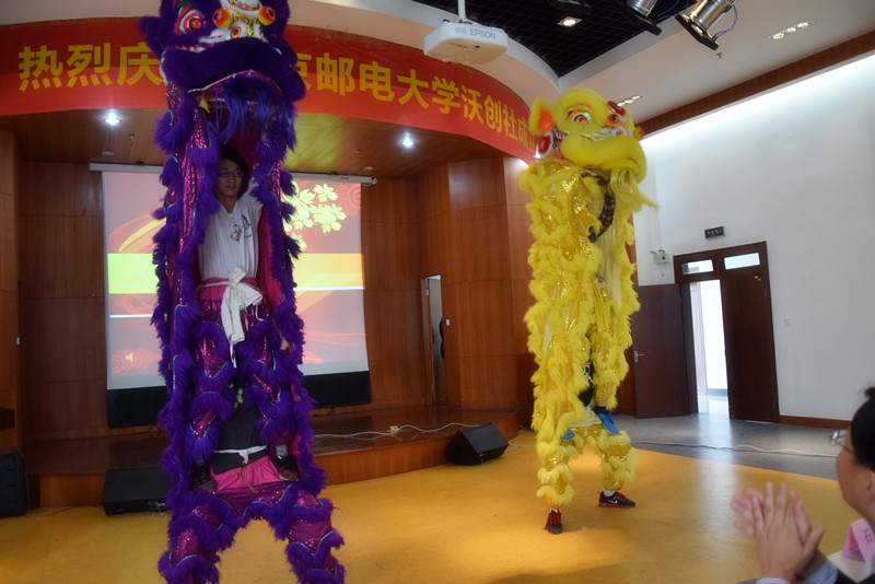 在主持人吴波老师介绍完出席的嘉宾后,沃创社成立仪式正式拉开序幕。冰球突破mg正规官网党委副书记董军先生首先致辞,表达了对南京联通公司与冰球突破mg正规官网展开新型合作的美好祝愿,同时也希望更多的同学能够学习李克强总理提出的“大众创业,万众创新”的理念。紧接着,南京联通公司栖霞下关副总经理石原峰先生向大家讲述了联通公司的历史以及现状,并阐述了沃创社创立的意义。在石原峰副总经理和董书记进行“点睛”后,展开了精彩的舞狮表演,上下跳动的狮子也预示着联通公司与冰球突破mg正规官网蓬勃向上、扬名四海。随后,石原峰副总经理和董军副书记向沃创社主创成员发放聘书,同时沃创社社长谢祎玮介绍了沃创社的部门架构。在出席人员合影留念中,成立仪式正式结束。
