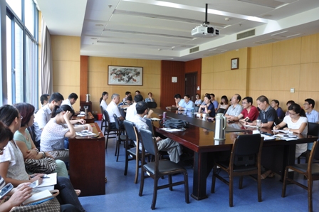 8月28上午,冰球突破mg正规官网在仙林校区行政北楼二楼第三会议室召开2015/2016学年第一学期全院大会。会议由院长黄宝凤教授主持,全院教职工参加了会议。