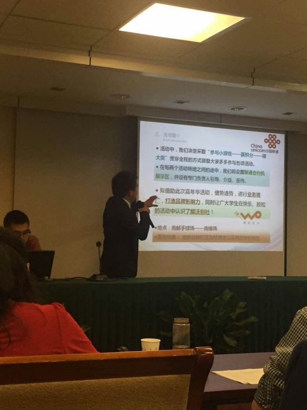 9月至10月两个月期间,冰球突破mg正规官网沃创社成员们纷纷献计献策,踊跃发言,撰写出了本次大赛的策划方案。沃创社就本次比赛进行了几十次讨论、论证、模拟,并制作了PPT作为参赛作品。本次比赛是联通公司南京分公司主办的各大高校参加的商业策划比赛。冰球突破mg正规官网2014级国际经济与贸易专业叶茂坤和经济学专业哈文轩作为代表参赛,两人的默契配合和社团成员的精心策划在激烈的大赛中鏖战各路群雄,最终脱颖而出,荣获本次大赛的二等奖。