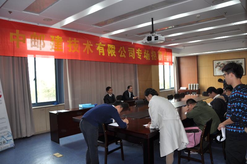 签约仪式后,中邮建技术有限公司人力资源部副主任王浩面向2016届毕业生举办了宣讲会,宣讲了公司主营业务、员工发展和招聘要求。宣讲会后中邮建技术有限公司开展了冰球突破mg正规官网专场面试招聘会。