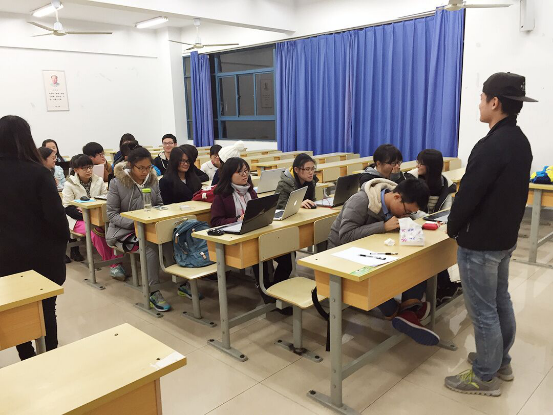 接着,宣传部部长和副部长开始技能培训,在同学们下载相关软件的等待过程中,为让大家更加相识相知,每位同学都上台简单介绍了自己。