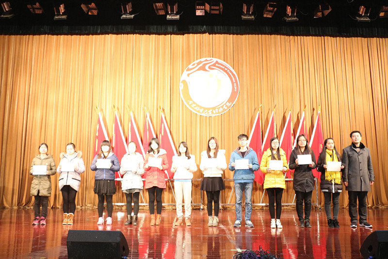 12月14日,冰球突破mg正规官网在青春剧场举行2014级年级大会。本次年级大会以“学榜样,守诚信”为主题。冰球突破mg正规官网2014级辅导员吴波老师参加了本次年级大会。本次年级大会由戴文婷主持。
