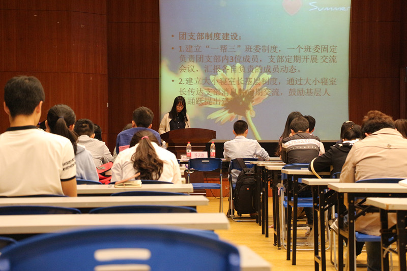 最后,优秀团支书代表蒋丽婷发言。她希望各班团支书互相帮助、互相学习,举办一些有创意的团日活动,加强班级凝聚力。