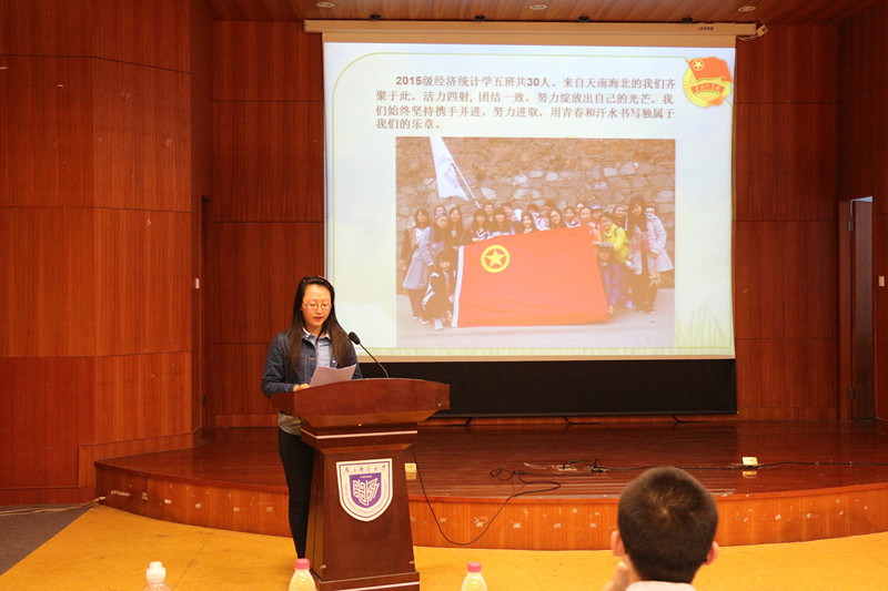 最后,优秀团支书代表蒋丽婷发言。她希望各班团支书互相帮助、互相学习,举办一些有创意的团日活动,加强班级凝聚力。
