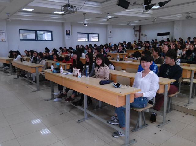 朱健乐学姐为同学们讲述了出国深造“那些事儿”。她从留学专业的选择,国家的选定,GRE、雅思、托福等语言考试的经验分享以及中介机构的最后选取,以及申报学校需要准备的必需材料做了详细全面的介绍,给予学弟学妹美好祝愿。