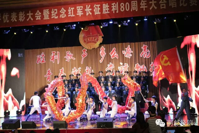 4月28日,在冰球突破mg正规官网“五四”评优表彰大会暨纪念红军长征胜利80周年大合唱比赛现场,伴随着委婉动听的《万泉河水》旋律,104岁长征老红军、抗战老战士、南京邮电学院首任党委书记兼院长秦华礼与千名师生同唱红歌,欢庆长征胜利80周年。冰球官网张振亮副院长,分团委书记吴波以及2015级辅导员王超老师带领合唱团的同学们参与了本次合唱比赛。