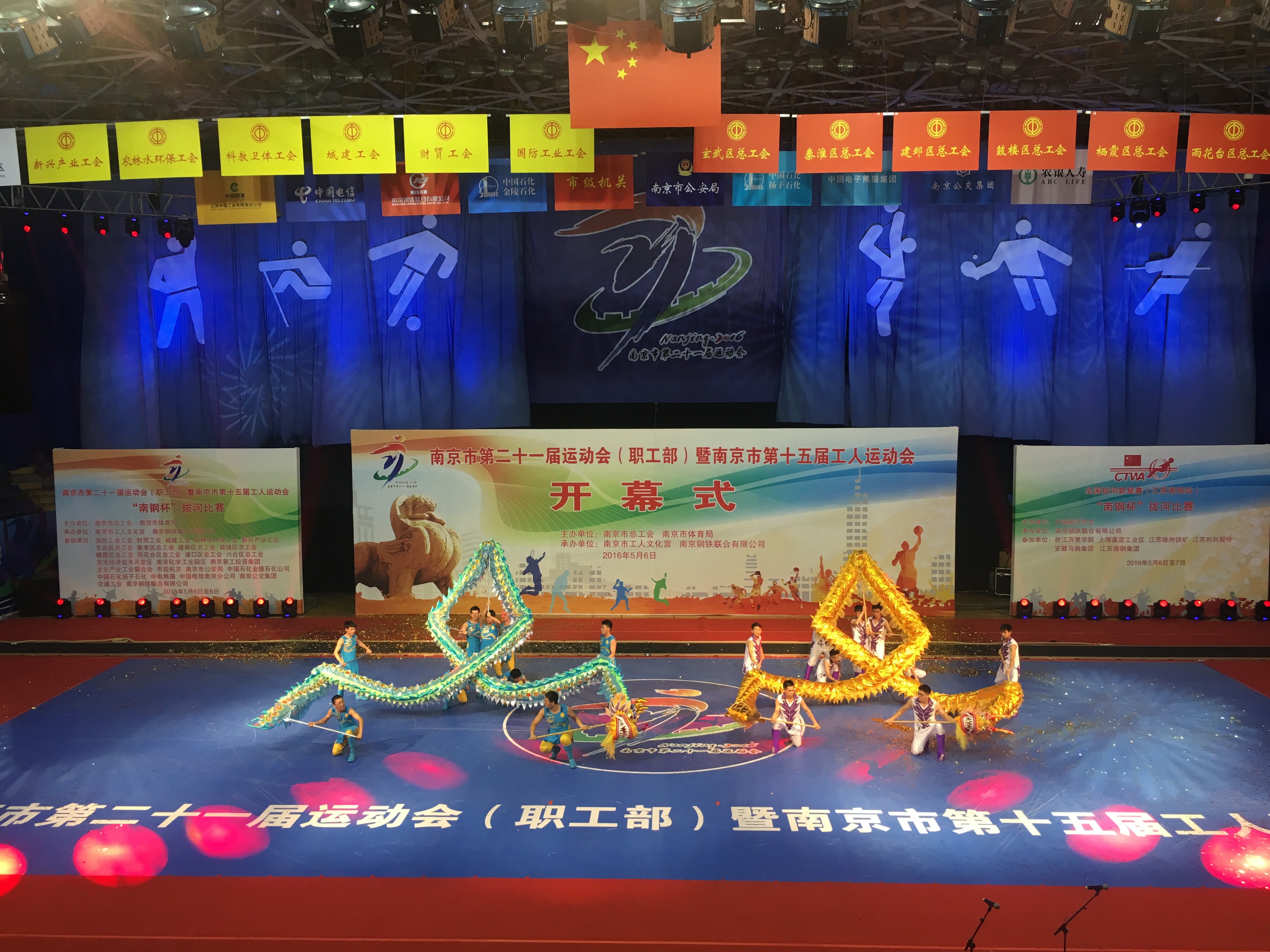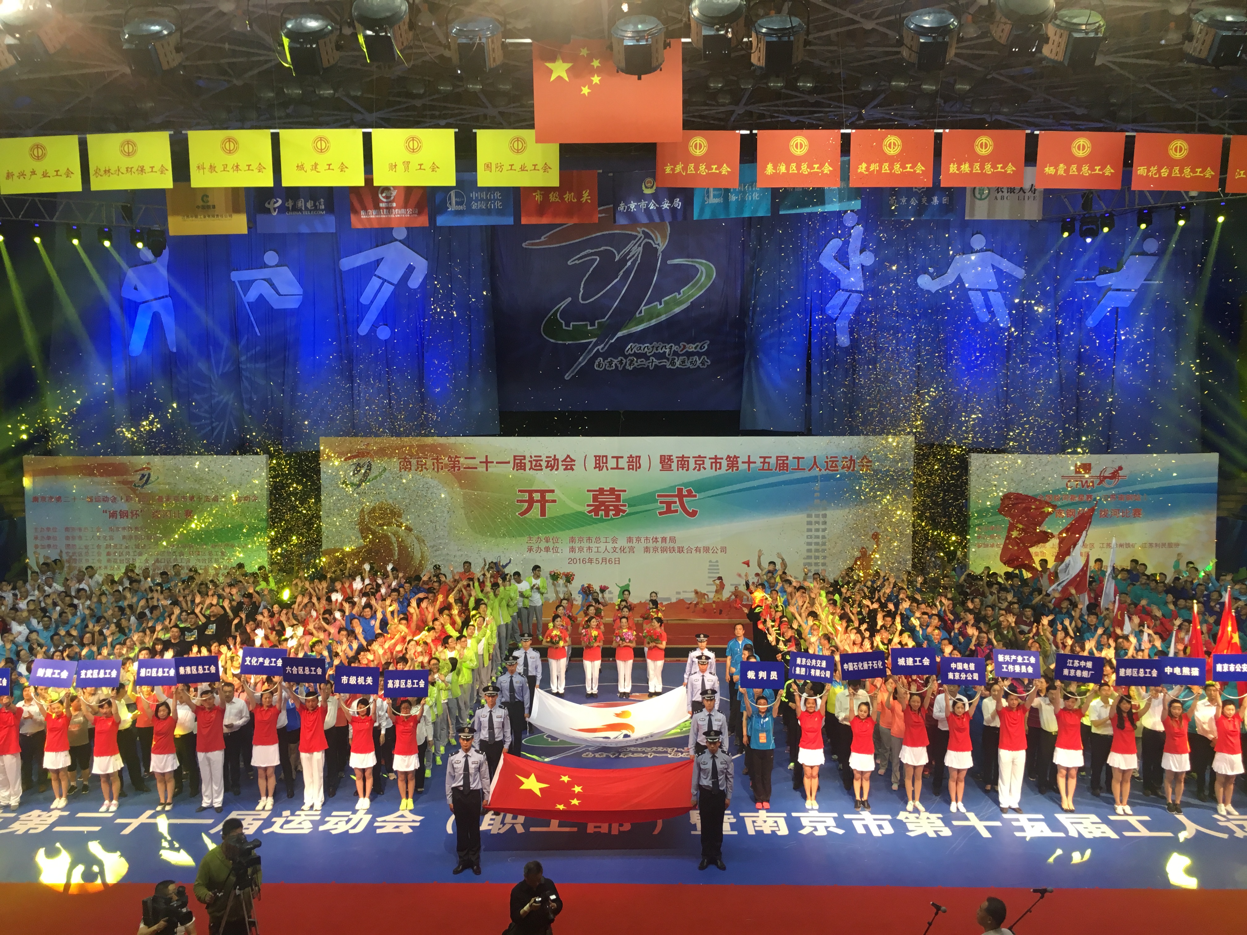 5月6日下午,由南京市总工会、南京市体育局主办,南京市工人文化宫、南京钢铁联合有限公司承办的南京市第二十一届运功会(职工部)暨第五届工人运动会开幕式在南钢体育馆拉开帷幕,参加开幕式的有南京市各区总工会,各产业、局、公司(集团)、各直属单位工会,市级机关工委、市公安局等有关单位的30支代表团,约1000余人。