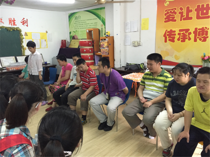 首先,志愿者和学员互相进行了自我介绍,以便彼此能够认识熟悉。学员们大多内向腼腆,在经过一段时间的相处之后,学员们不再那么拘谨,能够和志愿者进行简单的交流。每一位志愿者都充满热情,不停的在每一位学员之间穿梭,尽可能地陪伴、照顾他们。笑脸常在,所有的志愿者都将自己最美好的一面展现给大家。