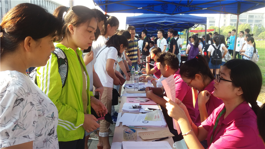 早晨,轮班安排的志愿者按时到达场地,开展志愿活动。整个上午及中午,在炎热的天气及繁杂的场合下继续有条不紊地办理新生注册、拍照、带领、解答疑问等工作,得到了学生家长的感谢和好评。大家克服疲劳和不适等种种困难,精心准备,热心服务,耐心解答,尽心给初到学校的学弟学妹们创造一个温暖、周到的氛围。