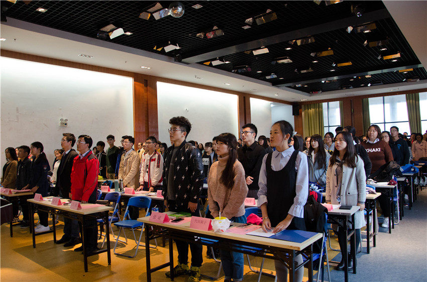 开学典礼在庄严的国歌声中拉开帷幕。首先通过一部精彩的视频回顾了冰球突破mg正规官网往期青共校暨干训班的点滴,使新学员对青共校的课程设置有了基本认识。接着16级先进学生代表张人浩发言,她号召同学应从小事做起,勇于担负起肩上的责任,向人生梦想前进,使同学们明白加入青共校不仅是一份荣耀,更是一份责任。