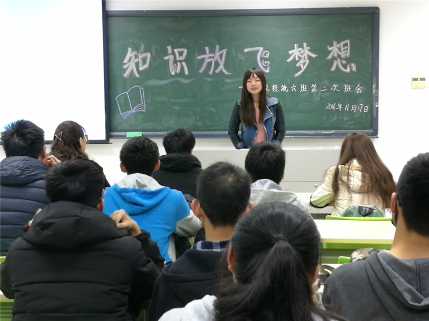 班会伊始,学长、学姐向同学们分享了一些自己在大学中的学习经验与生活体会,努力让同学们不再囿于思维定式,对大学有一个更加清晰直观的认识;同时,帮助和促进更多同学牢记、理解、践行“有理想,有追求,有担当,有作为,有品质,有修养”的六有大学生要求,肩负时代责任,高扬理想风帆。在之后的班会活动中,大家踊跃发言,并通过幻灯片向同学推荐优秀的文学与影视作品,将活动气氛推向高潮。在活动接近尾声时,同学们纷纷在明信片上写下个人目标,激励自己不忘初心,勇敢追梦。在活动的最后,大家进行合影留念。