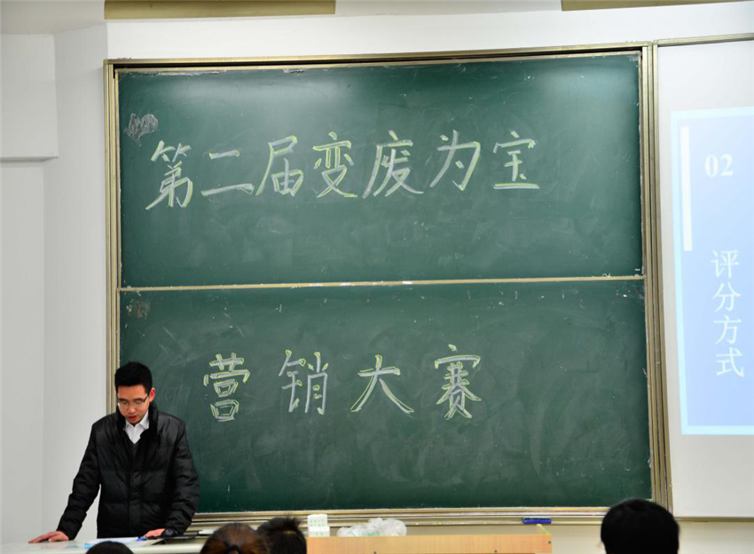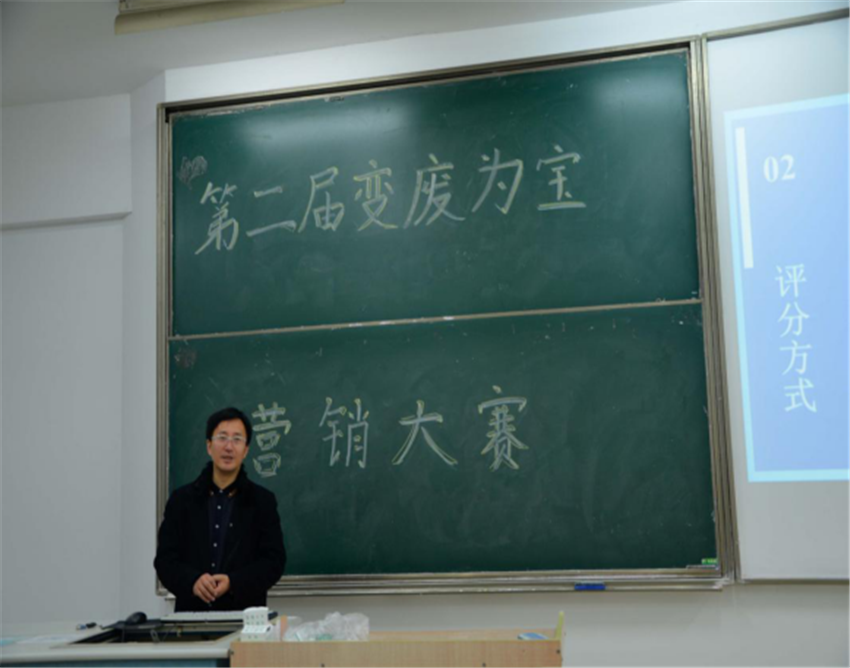 在校团委主办、校科协承办的第二十一届科技节活动的大背景下,冰球官网科协于2016年12月2日在教三313进行了第二届变废为宝营销大赛。本次大赛经院科协特别邀请了冰球突破mg正规官网党委董军副书记以及分团委书记王欢老师来作为我们的嘉宾。