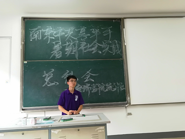 问卷发放结束后,社会实践小组成员回到学校,在教2-203召开了本次社会实践的总结会。社长柴家豪总结了三天的问卷完成情况,并对优秀队员做出了表扬,同时,分配了后期问卷分析任务。