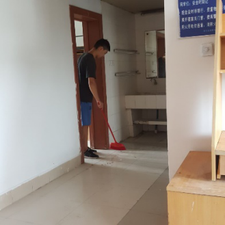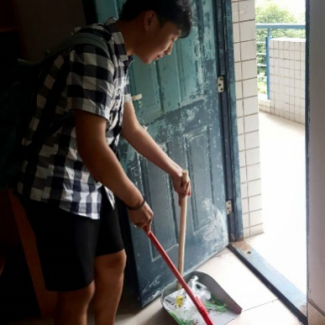 临近中午,打扫工作也接近了尾声。崭新的抹布渐渐变得乌黑,灰蒙蒙的地板光洁如镜;拉开窗帘,阳光洒进,宿舍里焕然一新。虽然不少同学的鞋子上、衣服上都染上了灰尘,但看着明亮整洁的宿舍,大家都露出了欣慰的表情。