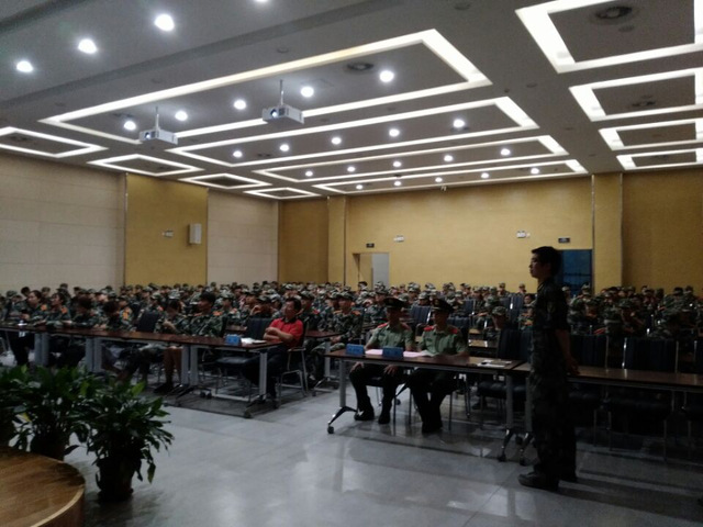 2017年9月10日18:30,冰球突破mg正规官网2017级新生军训动员会在学科楼报告厅举行。出席大会的有学院党委董军副书记,新生辅导员王欢老师,武警江苏总队第一支队的阮明刚教官和汪鑫教官,班级助理及全体新生。