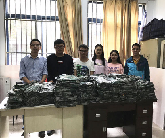 军训结束后,王欢老师鼓励冰球突破mg正规官网2017级学生将军训服清洗好后,统一收集到辅导员办公室进行捐赠。自9月23日起,冰球突破mg正规官网2017级新生踊跃参与,通过个人、寝室、班级等多种形式参与了爱心捐赠的活动。最终,共收到7个班捐赠的上衣104件、裤子96条,短袖85件,帽子47个,共计332件衣物,由辅导员和学生代表将衣物交付给仙林校区物管中心负责人员。