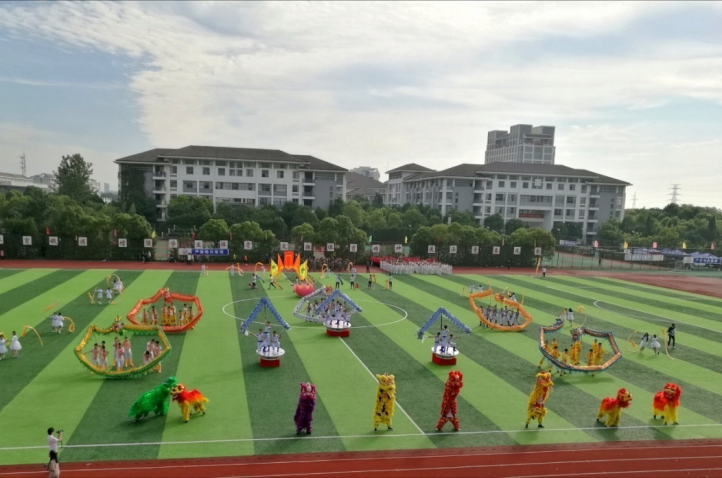 在表演中,我校龙狮团更是引入高台三节青花龙表演,龙队队员在青花瓷舞台上进行游龙穿龙等多姿多彩的舞龙表演,以整齐的编排和优美的动作,赢得了到场嘉宾和台下观众的阵阵喝彩与广泛好评。