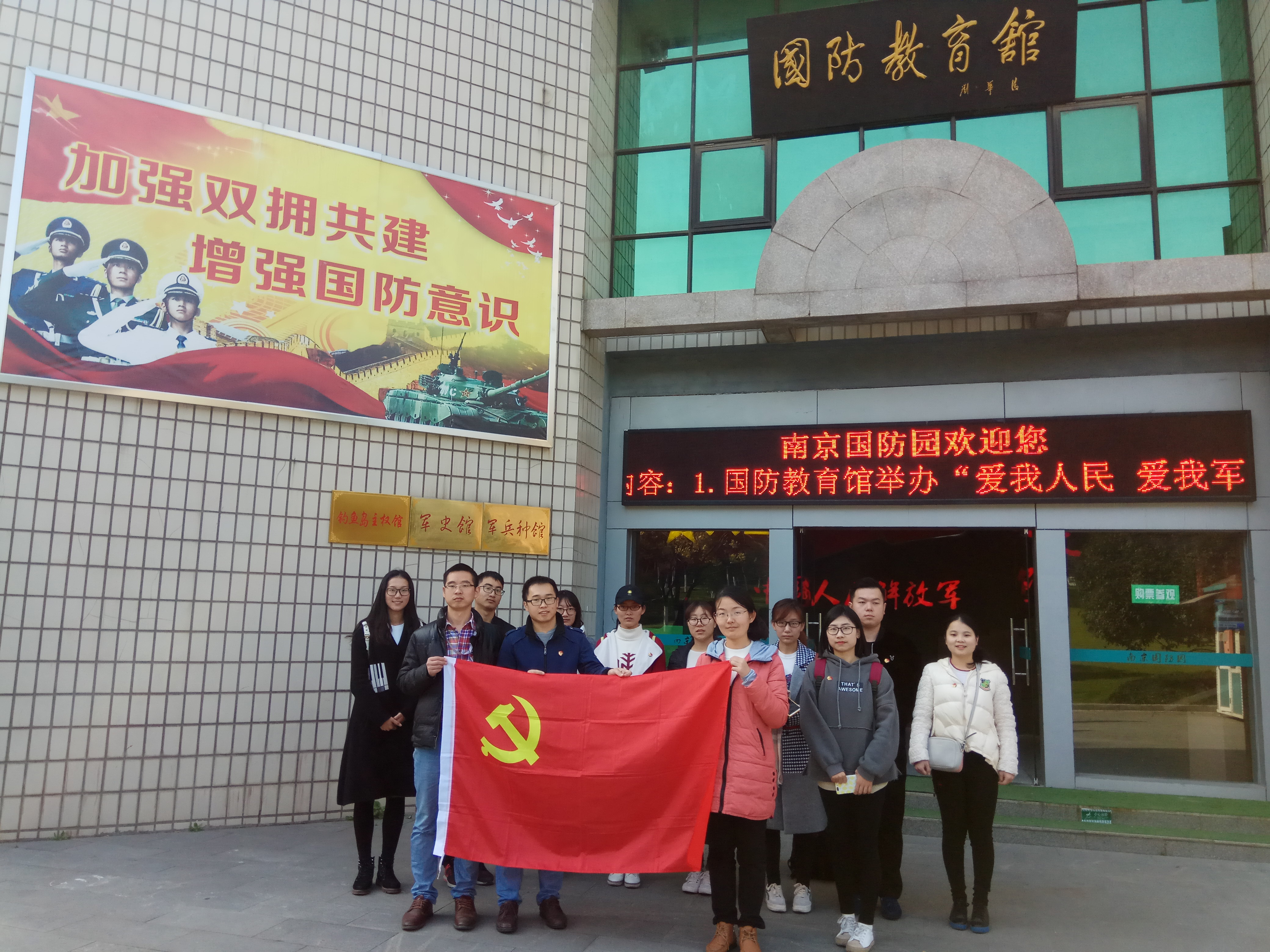 不忘初心、牢记使命。为深入学习贯彻宣传党的十九大精神,更好地践行“两学一做”学习教育,冰球突破mg正规官网本科学生第二党支部于11月25日来到南京国防园开展“不忘初心、牢记使命”主题教育党日活动。支部书记王欢老师、副书记王超老师、组织委员朱蔚懿老师以及支部全体学生党员参加了此次党日活动。