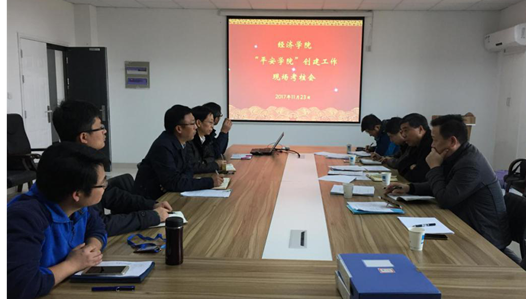2017年11月23日下午,由校党委常委、副校长王国平任组长,保卫部(处)、宣传部、江宁校区建管办等负责人组成的校“平安校园”创建工作第一检查组一行5人,对冰球突破mg正规官网“平安学院”创建工作进行了现场考核。学院党委书记张强、院长兼党委副书记黄宝凤等全体院党委领导班子成员以及学院相关老师参加了汇报工作。检查按照听汇报、查阅台账、实地检查、质询、闭门评分程序进行了考核测评。