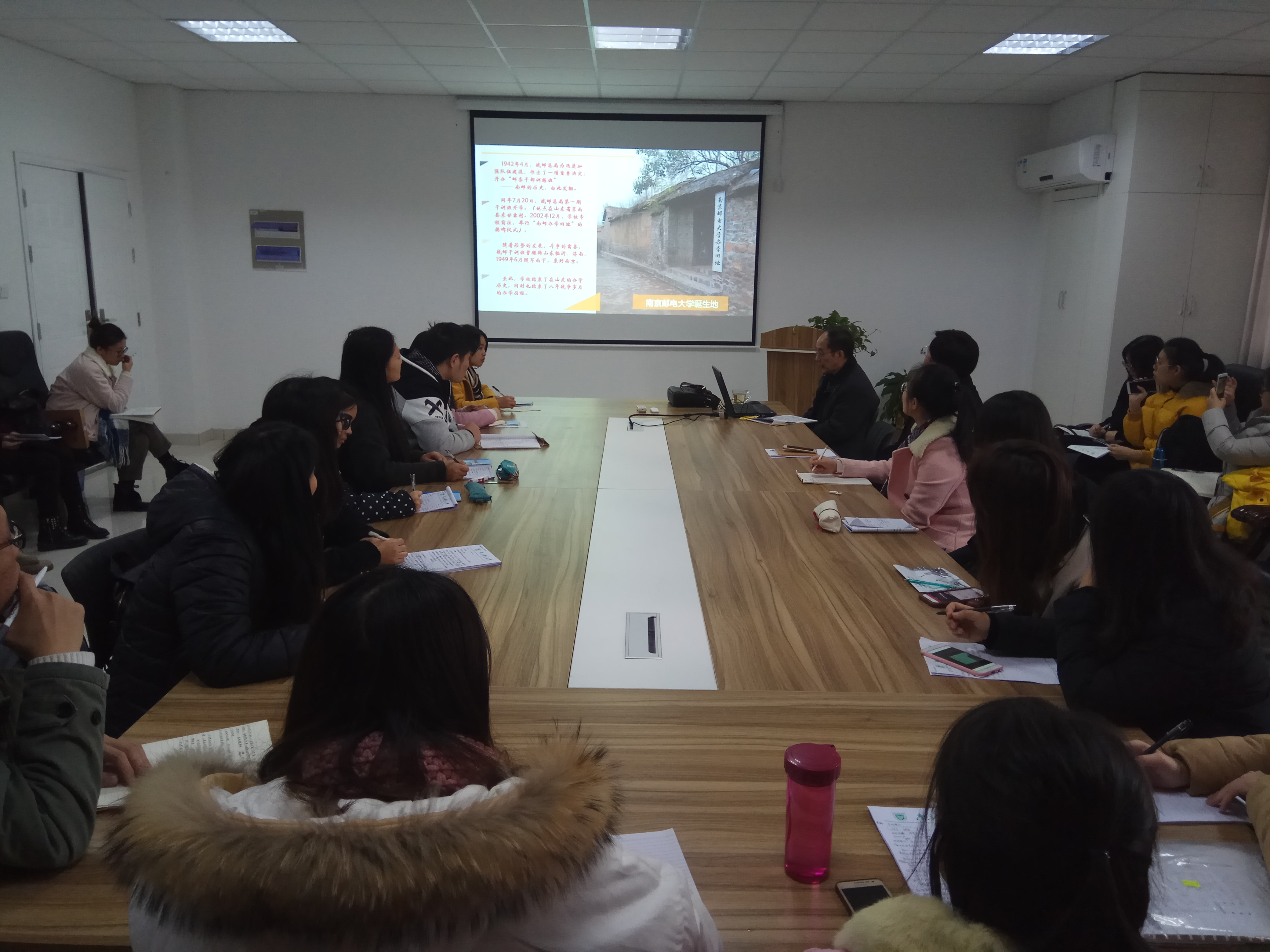 在全面学习贯彻宣传党的十九大精神之际,冰球突破mg正规官网第346期暨冰球突破mg正规官网第6期入党积极分子党校培训班于12月6日正式开班。学院党委、关工委有幸请到了校关工委颜福康老师主讲“艰苦奋斗,砥砺前行——南邮校史与南邮精神”作为开班第一课。颜老师是原校办主任,也是《冰球突破mg正规官网校史》编者之一。