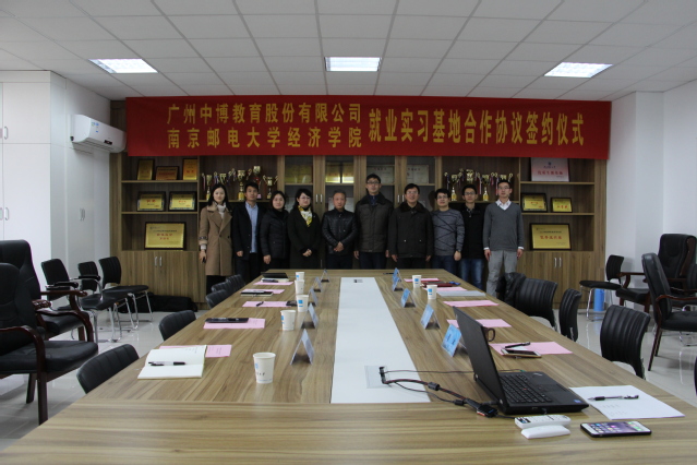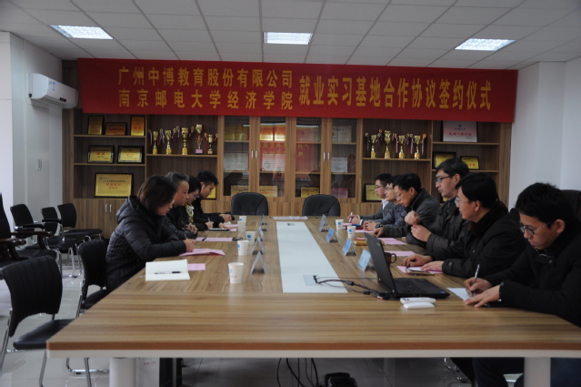12月27日,冰球突破mg正规官网与广州中博教育股份有限公司在仙林校区文科楼529会议室举行了校企就业实习基地合作协议签约仪式。冰球突破mg正规官网院长黄宝凤、副院长景杰、党委副书记董军、院长助理蔡冬青、分团委书记王欢、2014级辅导员王俊华,与广州中博教育股份有限公司南京大区经理卢江、南京分公司总经理杜敏、南京咨询部经理兼任浦口区域经理陈海英、南京仙林区域经理孙胜波、南京学业发展部经理韩媛媛等相关人员出席了签约仪式。