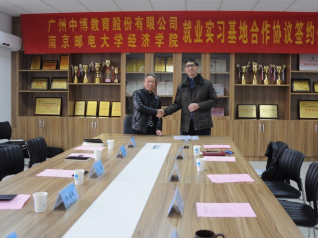 12月27日,冰球突破mg正规官网与广州中博教育股份有限公司在仙林校区文科楼529会议室举行了校企就业实习基地合作协议签约仪式。冰球突破mg正规官网院长黄宝凤、副院长景杰、党委副书记董军、院长助理蔡冬青、分团委书记王欢、2014级辅导员王俊华,与广州中博教育股份有限公司南京大区经理卢江、南京分公司总经理杜敏、南京咨询部经理兼任浦口区域经理陈海英、南京仙林区域经理孙胜波、南京学业发展部经理韩媛媛等相关人员出席了签约仪式。