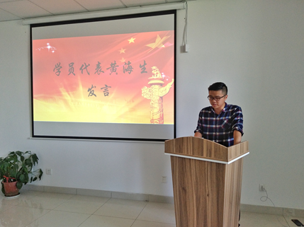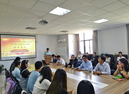 首先培训班学员代表黄海生上台发言,他总结了在本期培训班的学习收获,以及作为一名入党积极分子应如何在日常生活中贡献自己的力量做了表态。接着张强书记对全体党校学员提出了三点要求并寄予了殷切期望。他要求党员同学要起先锋模范带头作用,做到理论指导实践,知行合一;党员队伍要有严明的纪律,严格要求自己;要努力提高自身的党性修养和实践能力,争做合格党员。随后张书记、储教授、董副书记为本期学员代表颁发结业证书并集体合影。