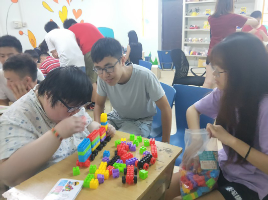 第一天清早,队员们顶着炎炎烈日朝着博爱安养庇护中心出发,到达时惊喜地发现原来三牌楼校区的志愿者同仁们已到达,并将共同进行志愿活动,播散爱心。进入博爱中心,老师与学员们用热烈的掌声欢迎志愿者们的到来,让他们倍感亲切。在接下来的几天里,同学们开展了丰富多样的志愿活动:教博爱中心学员们唱歌跳舞、和学员一起制作手工艺品、陪伴学员们参与简单的拼图迷宫等益智游戏和观看电影等,与庇护中心的学员们共同度过了美好的时光。