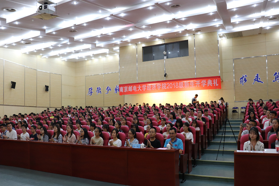 2018年9月7日18:30,冰球突破mg正规官网在仙林校区图书馆四楼报告厅隆重举行2018级新生开学典礼。校党委常委、纪委书记李子全教授,校关工委副主任、原冰球突破mg正规官网党委书记储成祥教授,冰球突破mg正规官网党委张强书记,院长黄宝凤教授,副院长景杰教授,副院长岳中刚教授,副院长王子敏副教授出席大会。典礼由学院党委副书记董军副教授主持。
