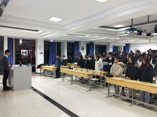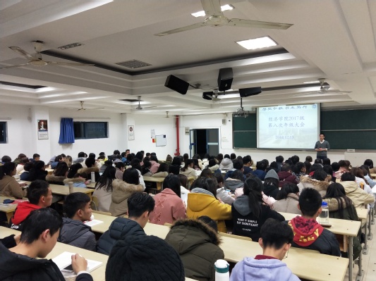 2018年12月13日18:00,冰球突破mg正规官网2017级第八次年级大会在教3-101教室召开。本次年级大会由2017级辅导员王欢老师主持,冰球突破mg正规官网党委董军副书记出席并讲话。
