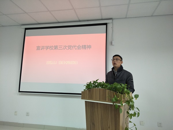 为贯彻落实学校第三次党代会精神,遵照根据校党委《关于认真学习宣传贯彻学校第三次党代会精神的通知》要求,2019年1月19日上午,冰球突破mg正规官网在文科楼529会议室召开全院教职工大会。学院党委书记张强同志传达校第三次党代会精神,并对相关内容进行了宣讲和解读。