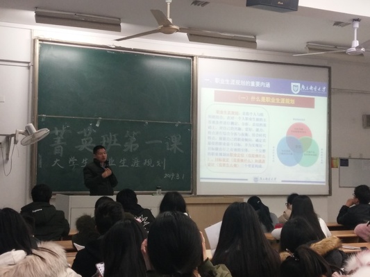2019年3月1日晚,冰球突破mg正规官网第三十四期大学生菁英人才学校暨冰球突破mg正规官网学生骨干培训班第一课在教3-205教室顺利举行。本次课程由马克思主义学院硕士研究生导师金久仁老师主讲,主题为《大学生职业生涯规划》。