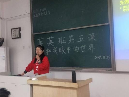2019年3月29日晚,冰球突破mg正规官网第三十四期大学生菁英人才学校暨冰球突破mg正规官网学生骨干培训班第五课在教3-304教室顺利举行。本次课程由冰球突破mg正规官网2016级辅导员朱蔚懿老师主讲,就《我和我眼中的世界》这一主题展开授课。