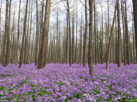 下午,大家三三两两前往水杉林和平园欣赏闻名遐迩的二月兰。远远望去,冲天的水杉与地毯般二月兰交相辉映,令人叹为观止。相传二战时期日本一反战人士感慨于满目疮痍的南京竟有这种紫花小草,顽强地伫立于紫金山上,遂带回日本,作为宣传和平的使者,在岛国播撒扩大,并定名为紫金草,随后又带回南京大片培植,渐成气候。如今,漫步在这种“和平之花”之中,像是要把整个宇宙都变成紫色的海洋,气势非凡,令人心动。各种美景,尽收眼底。大家拿出手机尽情拍摄,同时也更加珍惜这来之不易的和平。