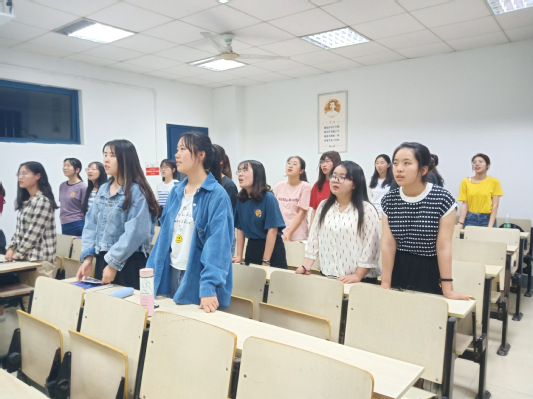 本次主题团日活动共分为三个部分:观看五四相关电影、举办五四爱国人物故事分享会、团员合唱团歌。首先,团支书王霞组织全体团员观看了中国共青团所推微电影—《青春与祖国同在》。同学们在观影中重温了五四运动,深刻领会了五四精神。借此,团支书告诫同学们切勿忘记五四历史,要勇担中国新时代青年的责任,不懈奋斗,让青春绽放光芒。接着,团支部举办了五四爱国人物故事分享会。不同时代的优秀爱国志士的动人事迹让同学们十分感动,分享完毕后纷纷交流心得体会,以此深切缅怀革命先烈,领会爱国精神。活动的最后阶段,团支书组织全体起立,共唱团歌,感受奋进之路的坎坷艰辛。