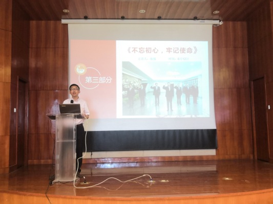 张强书记致辞并以《不忘初心、牢记使命》为主题展开授课,他从当前的中美贸易战和5G发展切入主题,讲述了我国所面临的严峻形势,勉励学员们要做有理想、有抱负的优秀青年,将自身理想与国家前途命运相结合,把汗水挥洒在祖国需要的地方。