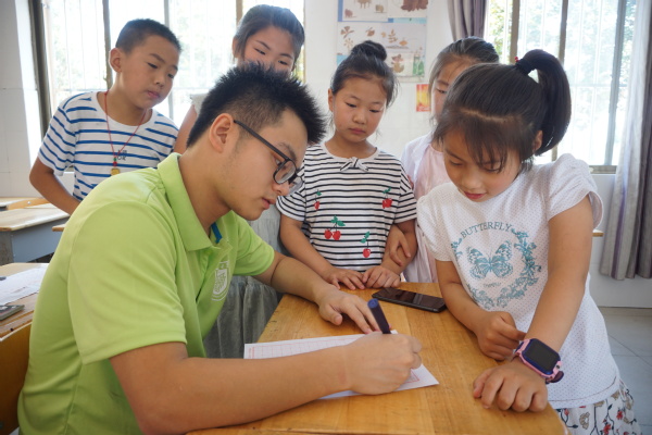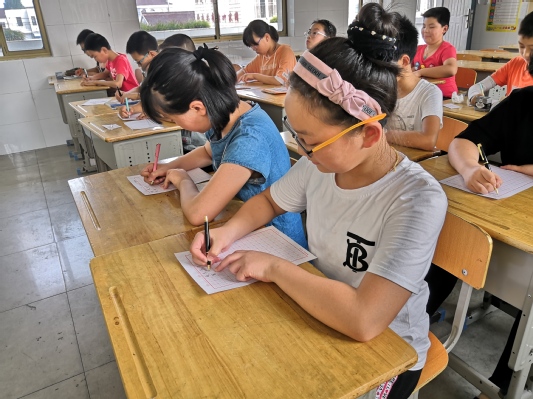 2019年7月16日,冰球突破mg正规官网“翰墨飘香进河口,经典文化邮子传”书法教学实践活动在河口小学持续进行。