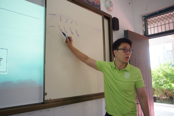 通过第一天的相处,团队成员与小学生们的关系变得更加融洽,彼此间的交流也变得更加自然。授课过程中,志愿者不光通过课件为学生们拓展了很多书法文化知识,更是耐心细致地对所带班级的学生进行一对一的笔画指导,手写范字的形式让学生们更加清楚理解了书写过程中需要把握的重点难点和易错点,加深了掌握的牢固性。慢节奏的方式让学生们卸下了往日学习的沉重负担,安静的教室只有笔尖在纸上划动的细响和老师对学生的轻声指导。学生们沉浸于自己的书法世界之中,用一笔一划细致感受着书法本身的魅力。