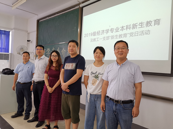 2019年8月30日,新生入学第三天,冰球突破mg正规官网教工一支部(经济系)全体党员深入基层、走进课堂开展“党员与新生面对面”党日活动,将新生专业教育活动与“不忘教师初心,牢记育人使命”主题党日结合在一起,作为党员联系服务群众的一次集体实践。