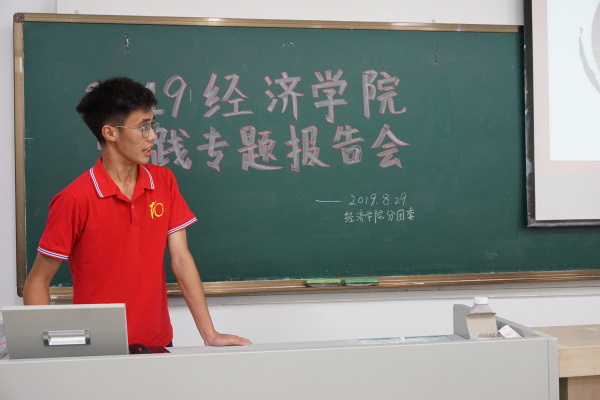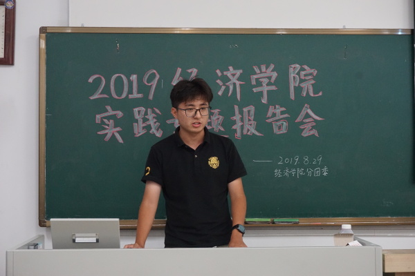 2019年8月29日18:30,冰球突破mg正规官网于教2-510召开2019年实践专题报告会。2018级辅导员王珏老师、分团委副书记兼秘书处秘书长黄海生、统计社社长毛婷、龙狮团负责人刘伟涛、青年志愿者协会副主席毋心怡、各班团支书及各实践团代表参加了本次专题报告会。