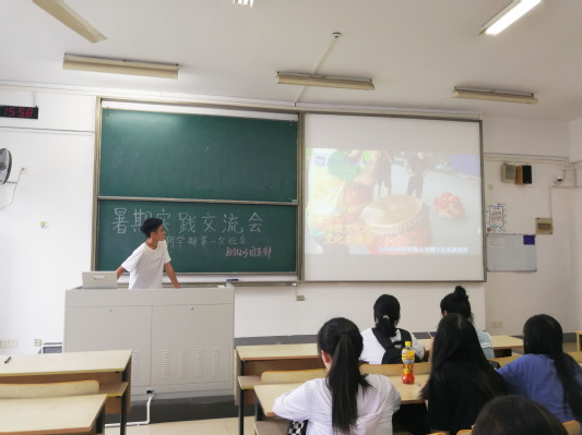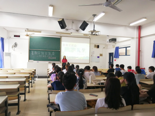 首先由新加入的四位转专业同学作自我介绍,班长王燕同学对班级上学期的表现做了简单汇报并对未来的新学期寄语,希望大家共同努力,为自己和班级作出更大的贡献。随后举行暑期社会实践交流会,大家积极发言,这当中有职业规划的实践,也有实现自我价值积极投入教育的,还有传承发扬中华优秀传统文化的。周丽同学以“教育改变命运”为主题作了专题报告,李其远同学热爱舞龙舞狮奔赴广东佛山参加训练,都给大家留下了深刻印象。