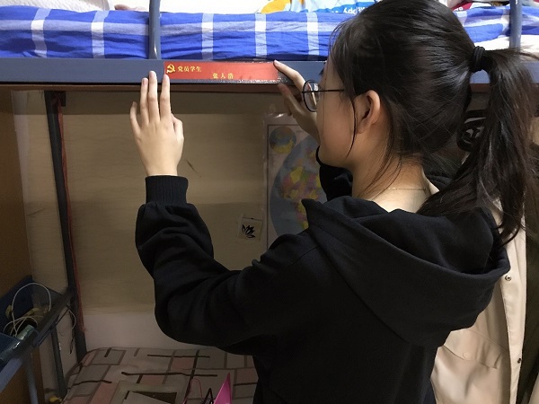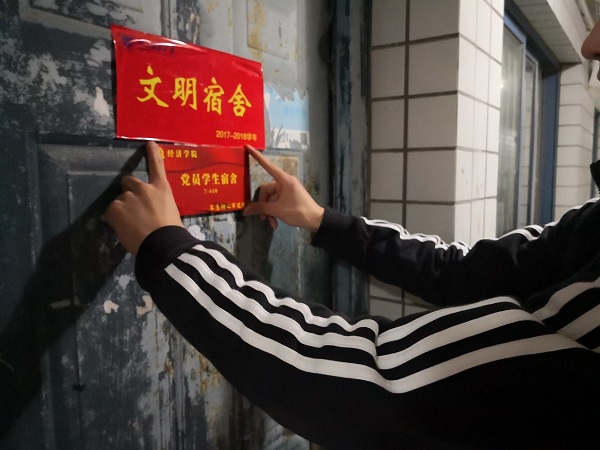 舍风建设,党员先行。冰球突破mg正规官网研究生党员和本科生党员上下联动,以“大室亮责任,小室亮风貌,床铺亮态度”的三重方式亮出学生党员身份,在学生党员宿舍的大室、小室正门和床铺侧面贴上带有党员姓名的红色标牌,以党员带动群众,让群众监督党员,力争达成党员宿舍零扣分,群众宿舍传帮带的全辐射效果,将学生宿舍的文明建设和学风建设有机结合,将学生宿舍作为思想政治教育的主阵地。