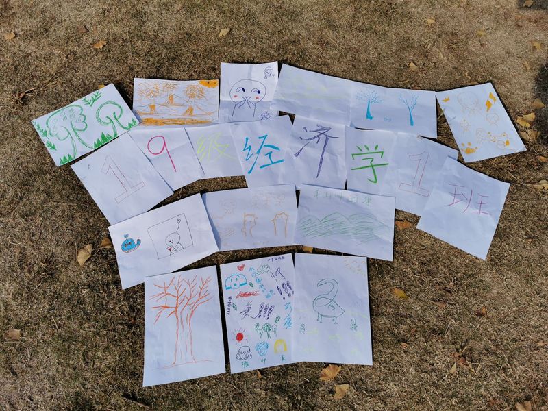 银杏树下,金草地上,活动在庄严的国歌声中拉开帷幕。大家举起中国共产主义青年团团旗,唱响团歌。随后姜云飞同学用唱红歌与诗歌朗诵等方式,带大家回顾历史,展望未来,不忘爱国初心,牢记青春使命。诗歌《不忘初心》是习近平主席的教导;歌曲《团结就是力量》、《强军战歌》是铿锵的力量。最后B19201团支部的每位成员拿起手中的水彩笔,共同制作了经济学一班团支部的字牌,大胆放飞自我,画出自己想画的画。