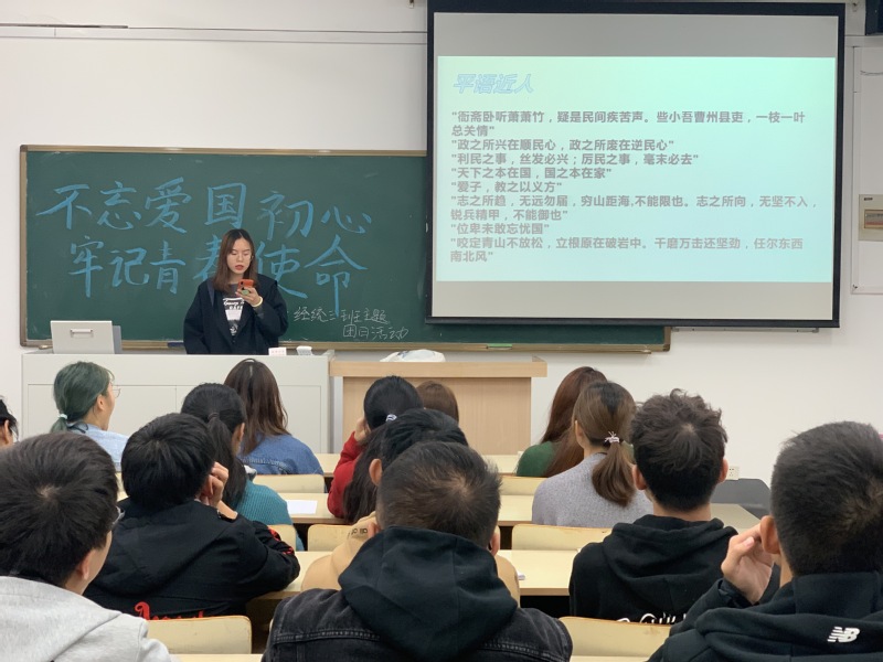 2019年11月13日下午,为加强团员青年的爱国意识,树立“不忘初心、牢记使命”的历史责任感。冰球突破mg正规官网B191203团支部在教2-105开展了“不忘爱国初心,牢记青春使命”的主题团日活动,本次活动由班长杨洁丽同学组织开展。