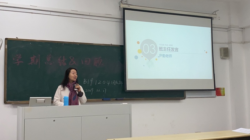 首先,穆昱彤同学通过PPT的形式向大家展示班级军训、尊师祭孔仪式、运动会、辩论赛、团日活动等集体活动的照片,引发同学们对这一学期的美好回忆。接着由学习委员张芸蕾同学对大家进行期末动员,通过对国家有关政策的解读着重强调了诚信考试的重要性,希望同学们凭借自己的实力在期末取得好成绩,随后她向大家介绍专业培养方案,加强同学们对专业的认知。最后,班主任尹勤老师总结发言,尹老师以“少壮不努力,老大徒伤悲”为主题,语重心长地向同学们讲述本科期间努力奋斗的重要意义。