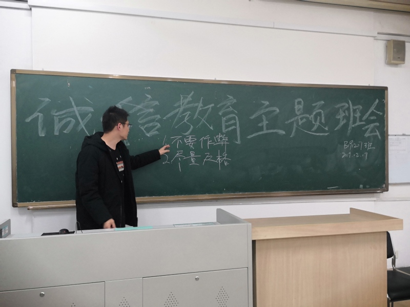 2019年12月17日18:30,冰球突破mg正规官网B191207班在教2-509举办诚信教育主题班会。班主任张弛老师和班级全体同学参加,班会由班长樊玉卓同学主持。