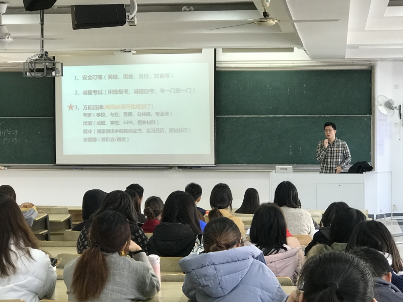 2019年12月12日中午,冰球突破mg正规官网2018级本科生在教2-302教室召开2019-2020学年年级大会。冰球突破mg正规官网党委董军副书记、2018级辅导员王珏老师与2018级全体本科生参加了本次年级大会。会议由王珏老师主持。